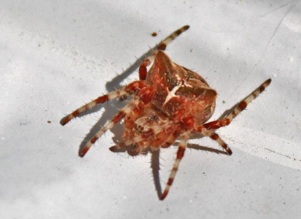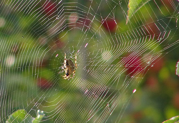 There were also lots of these spiders (probably a male Araneus sp.) hanging out in the orchard on the day this was taken.