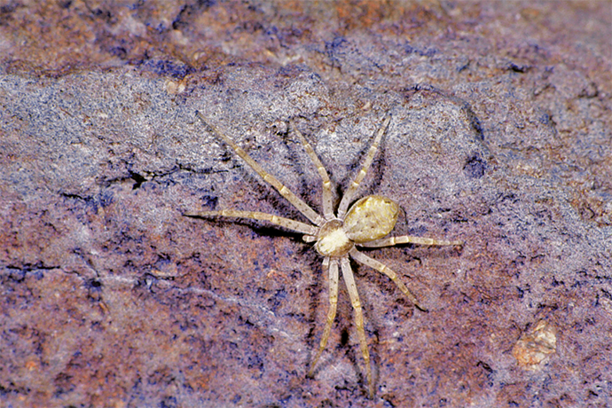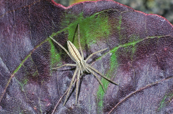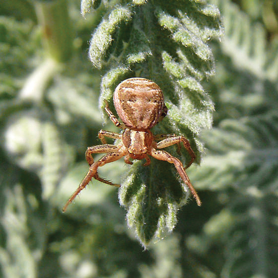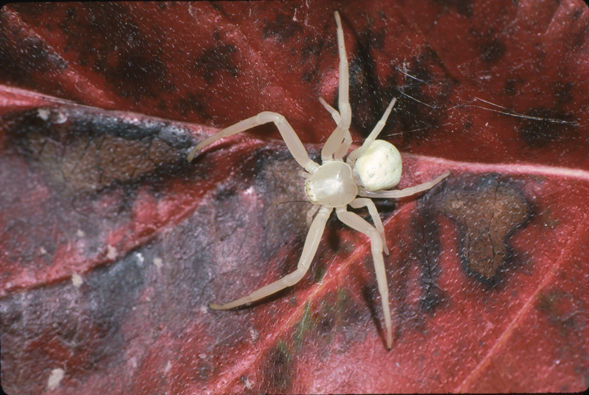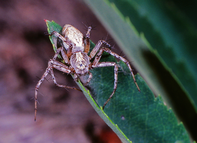 Running crab spiders may look similar to their Thomisidae cousins. However, they tend to be a bit more elongate and the configuration of their eyes are different. The Philodromus cespitus shown here looks similar to Xysticus spp., but they dont have the larger front 2 pair of legs. Instead, their legs are long and slender and useful for running. Typically, running crab spiders use the same sit-and-wait prey capture strategy, but the long legs allow them to run fast when necessary to pursue prey or escape danger. This particular species can be found either in the trees or in the understory.
