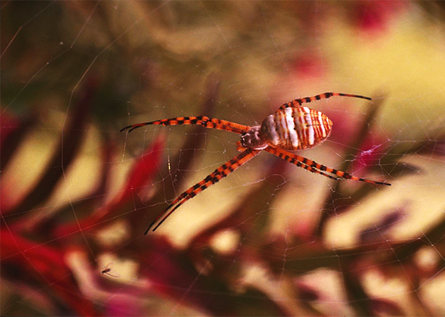 Although less common, Argiope trifasciata shown here can also be present in orchards.