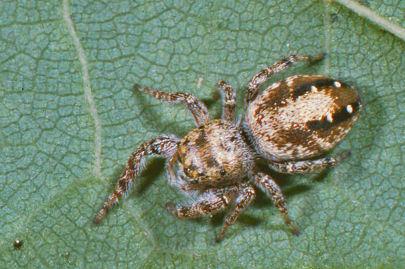 Prey: As mentioned, jumping spiders are generalist feeders that attack insects or other spiders. Selection of prey is more size dependent. Small, immature spiders will start out catching aphids, thrips and other smaller prey. As they grow, the prey size increases to include such things as late instar moth larvae or adult earwigs.