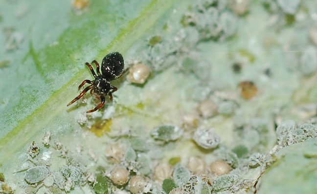 Prey: aphids, white apple leafhopper, western tentiform leafminer, Campylomma, various flies, ants, other spiders and wasps.